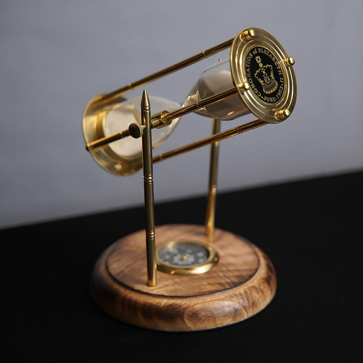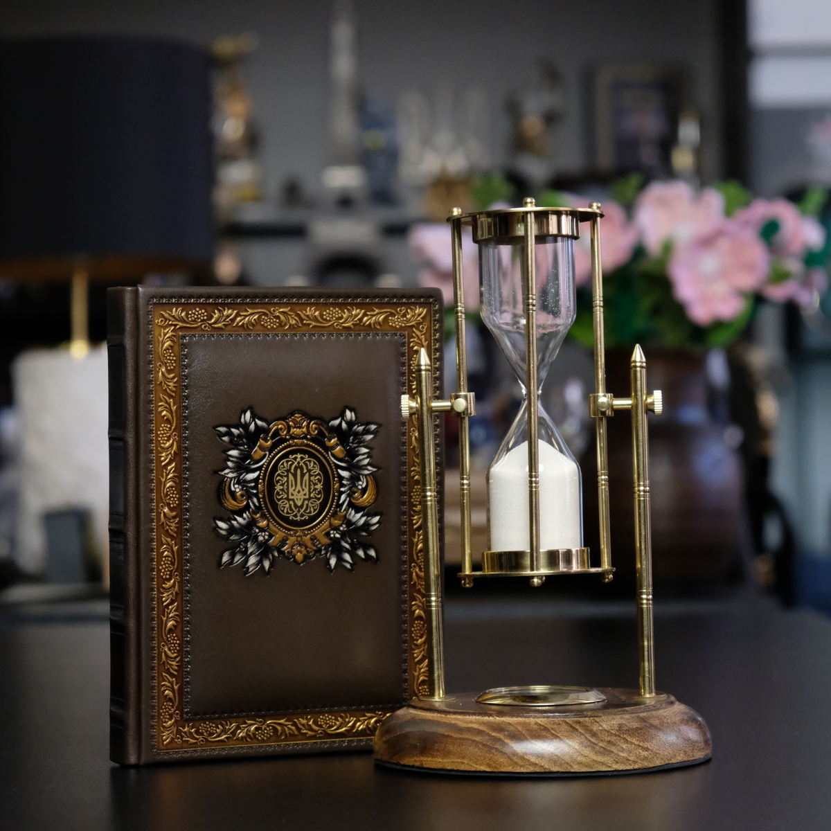 Подарунковий комплект вінтажний пісочний годинник "Royal compass 1953" та щоденник "Лідер"