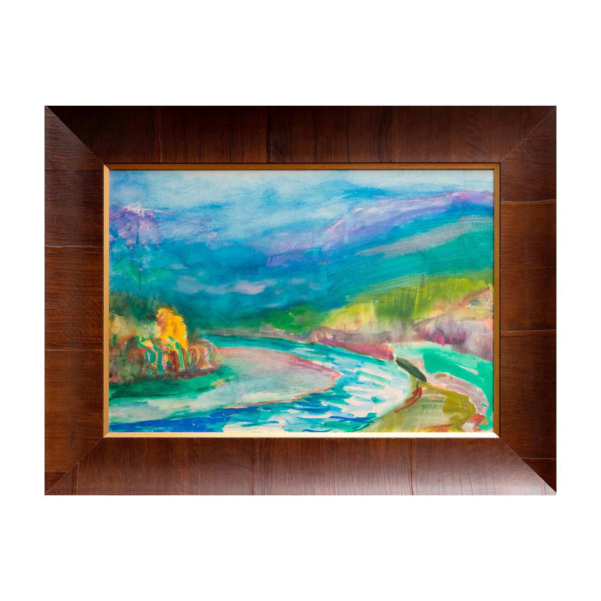 Раритетна картина "Річка в Карпатах" (папір, акварель), Микола Глущенко, 1970-і роки