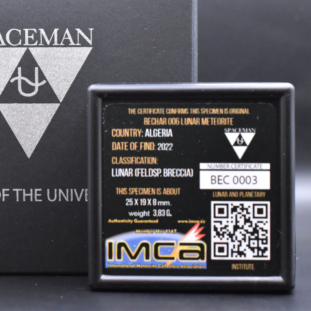 Сертифікований місячний метеорит "Bechar 006 BEC0003", 3,83 г (Алжир)