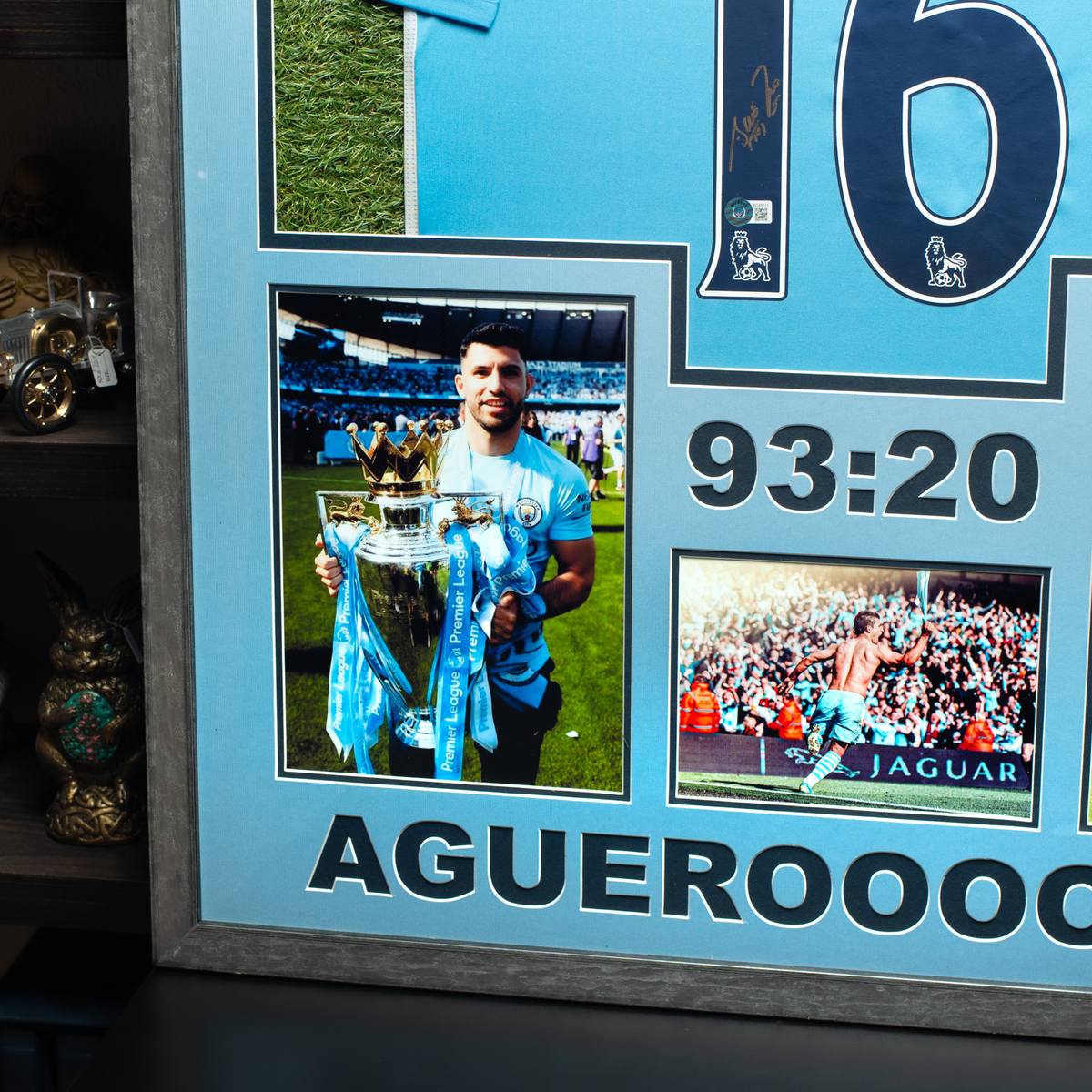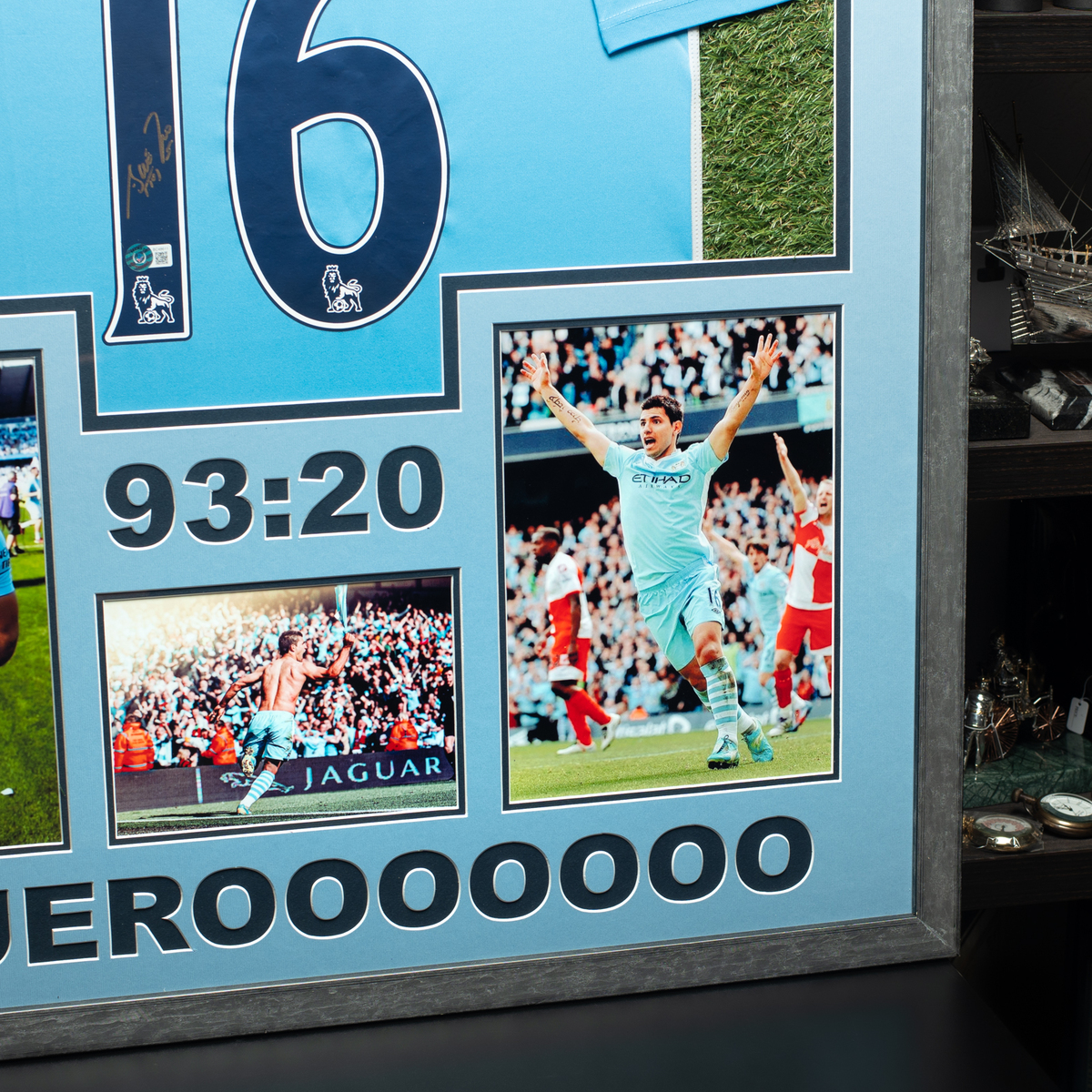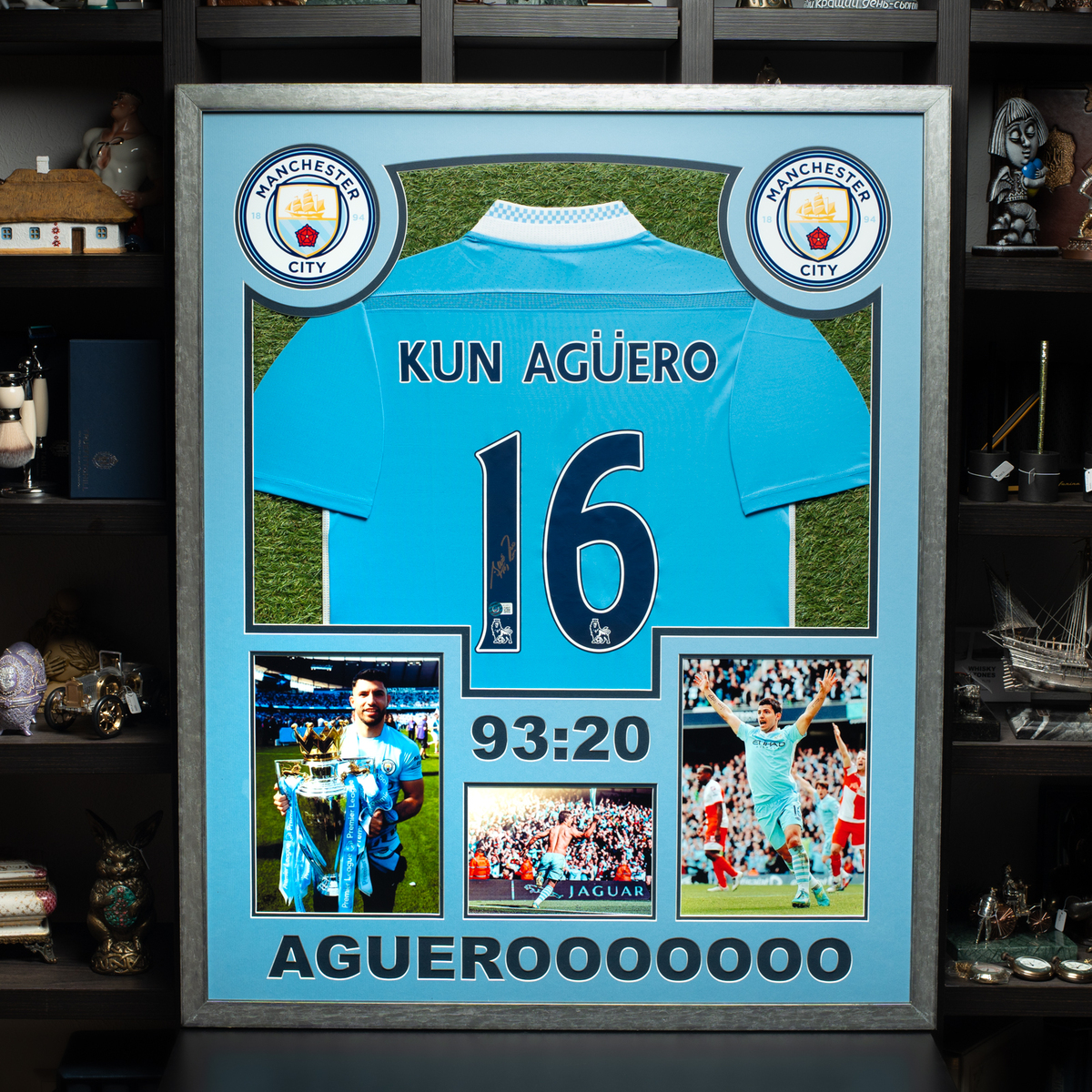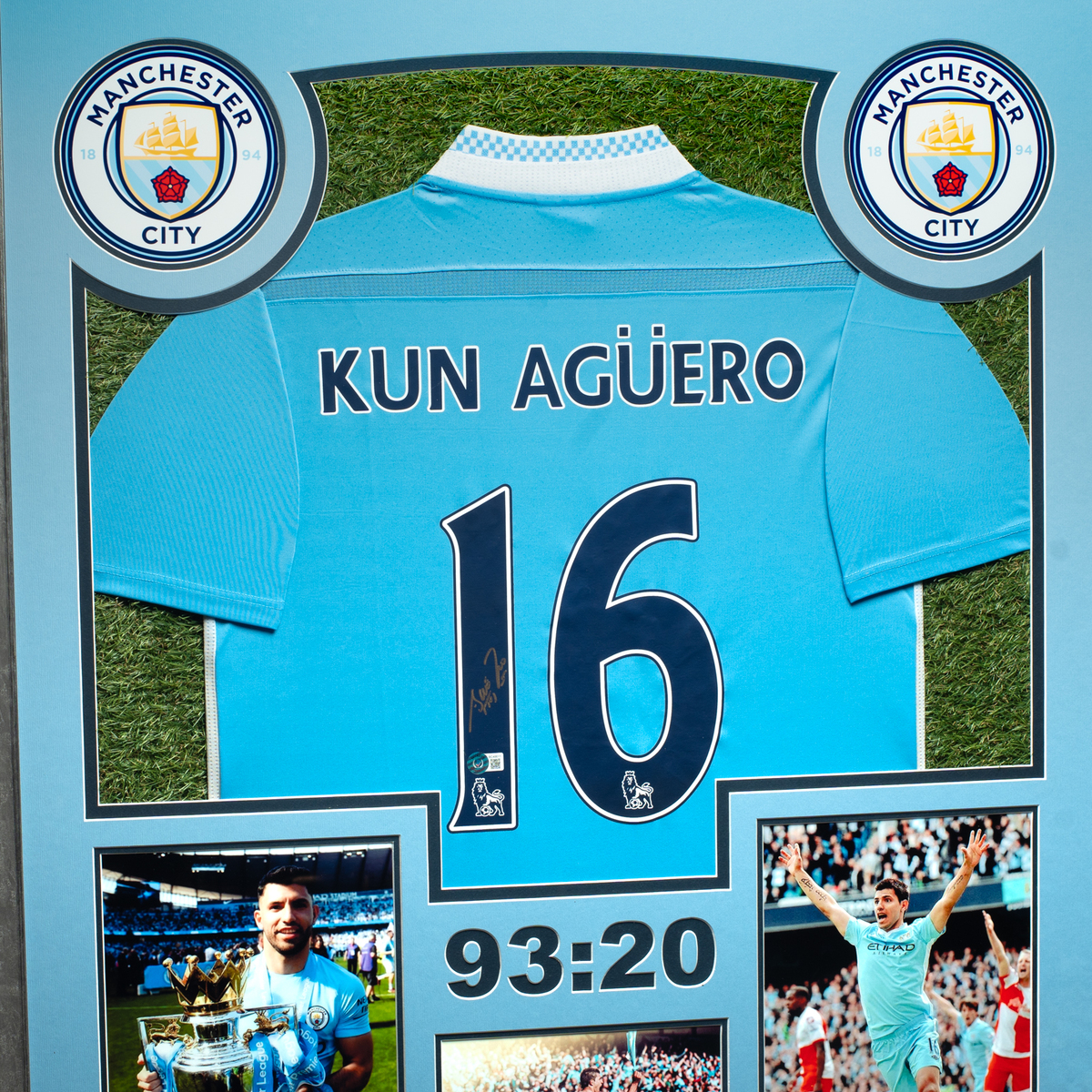 Сертифікований автограф аргентинського футболіста Серхіо "Кун" Агуеро на футболці з колажем фото (85х105 см)