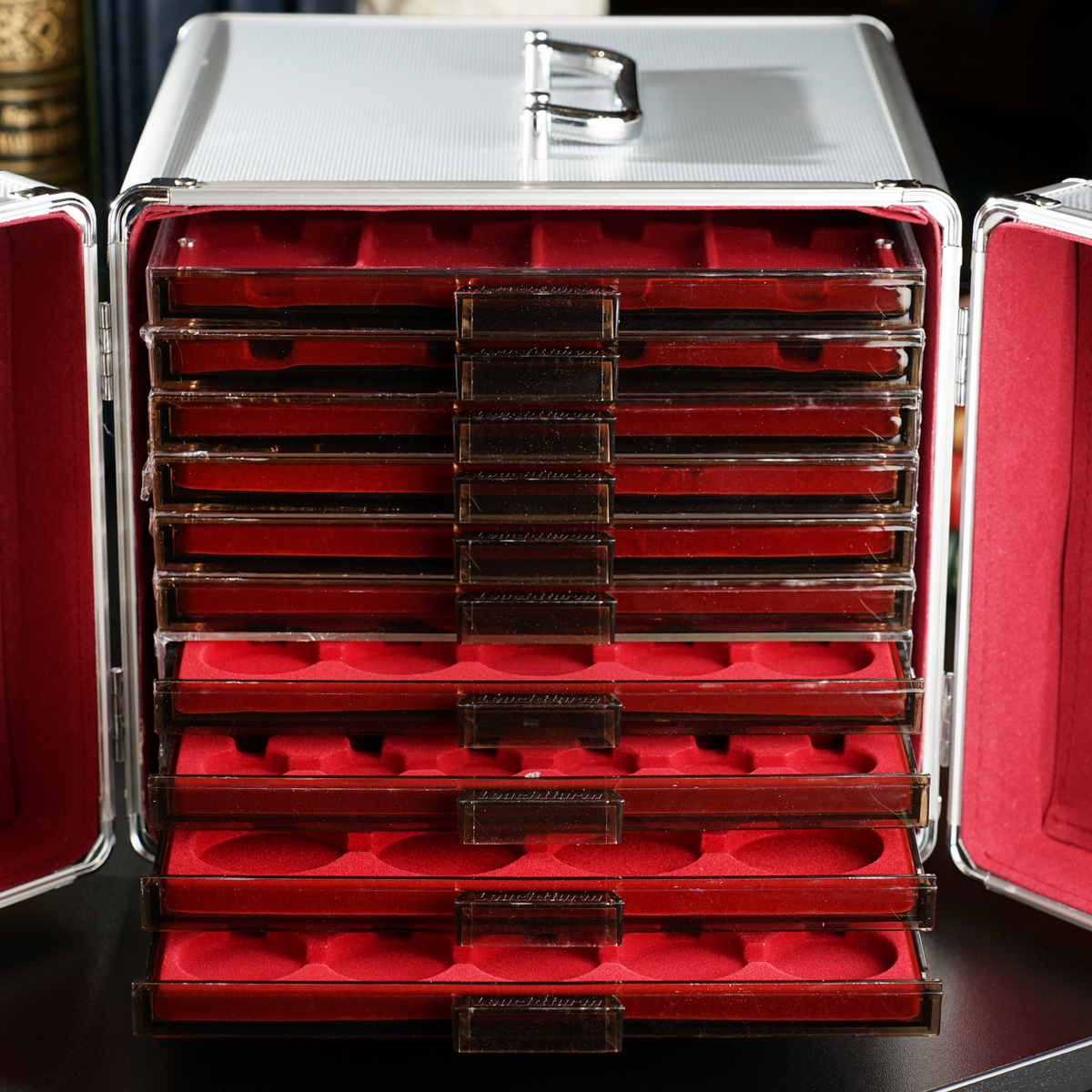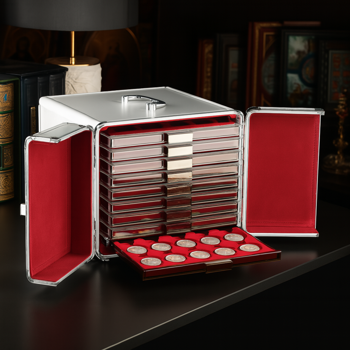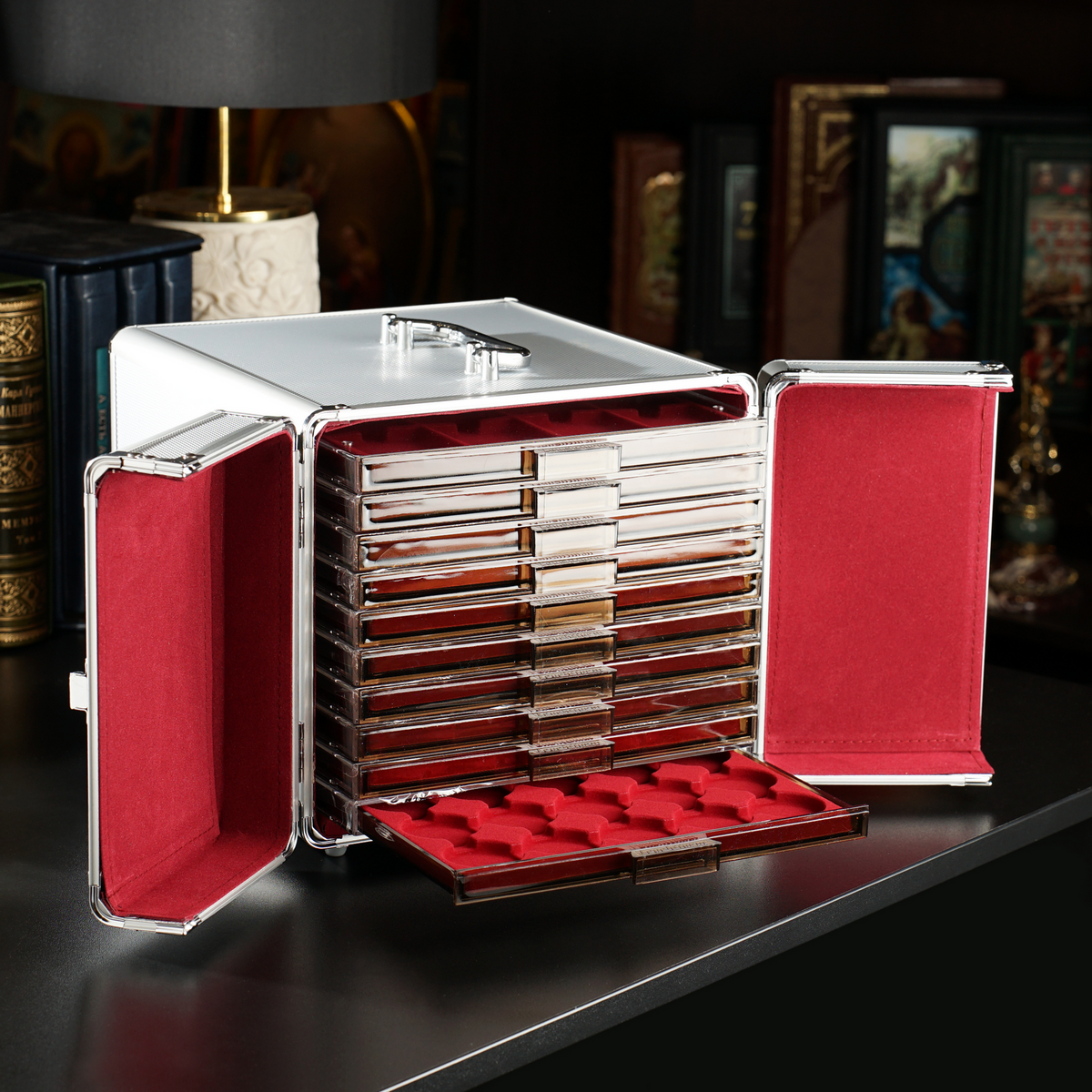 Металлический кейс-шкаф для зберігання і транспортування монет (до 258 шт) різних розмірів від Leuchtturm (Німеччина)