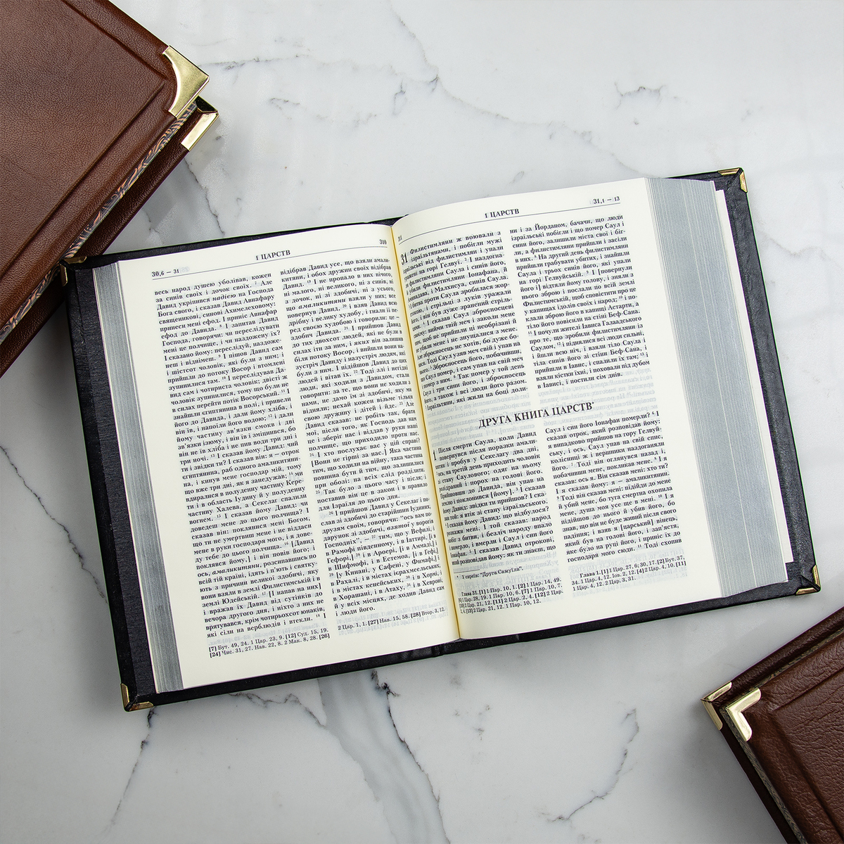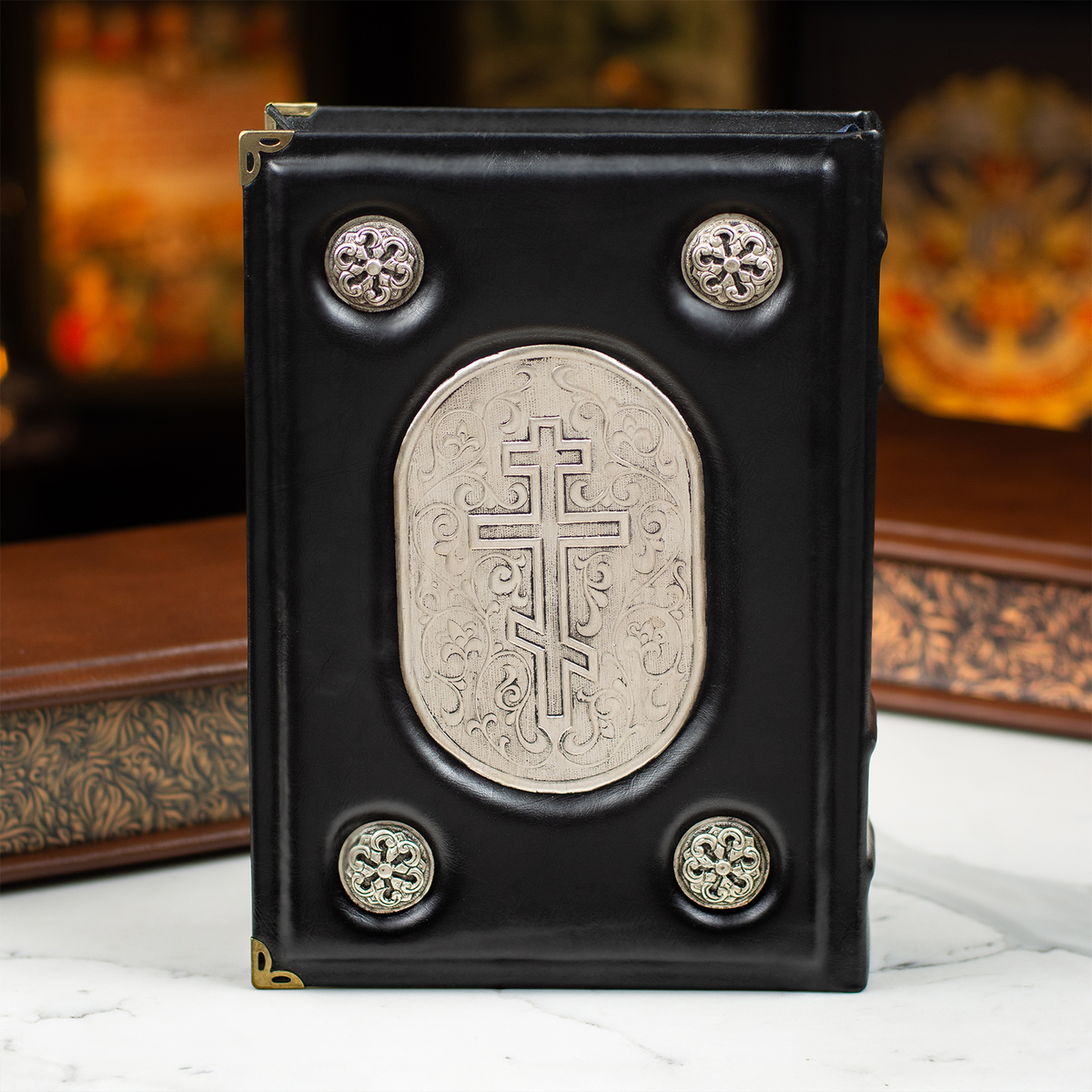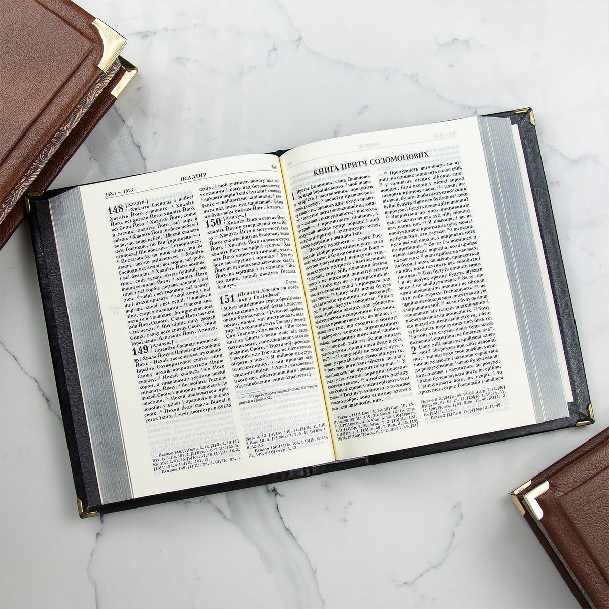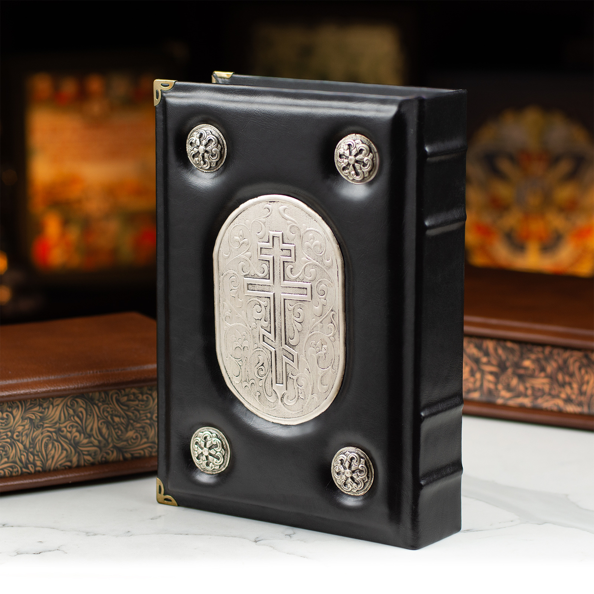 Шкіряна Біблія ручної роботи в кейсі з посрібленням (українською мовою)