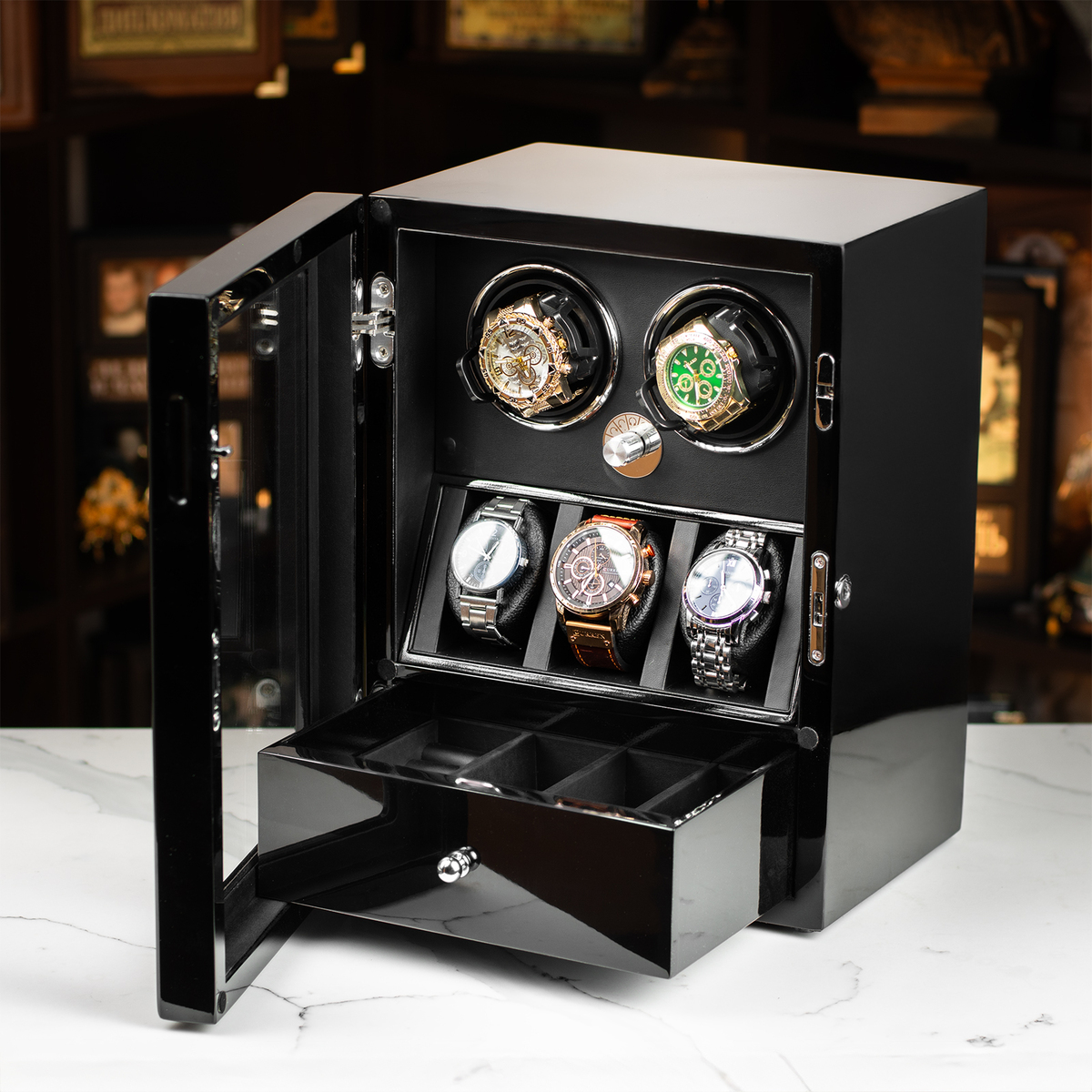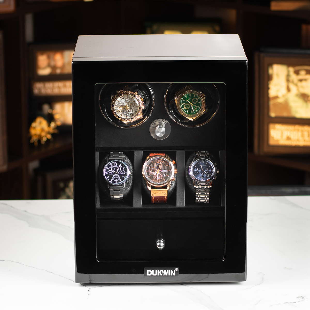 Скринька для підзаводу 2-х та зберігання 3-х годинників "Rilton" від DUKWIN (чорна)