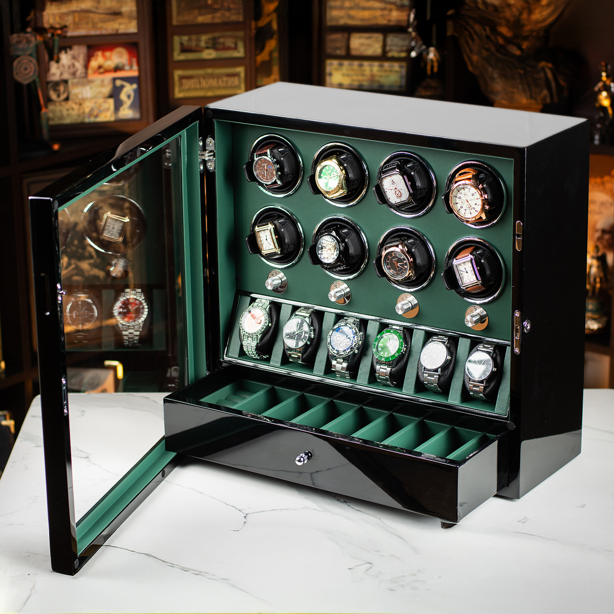 Скринька для підзаводу 8-ми та зберігання 6-ти годинників "Vionex" від DUKWIN (зелена)