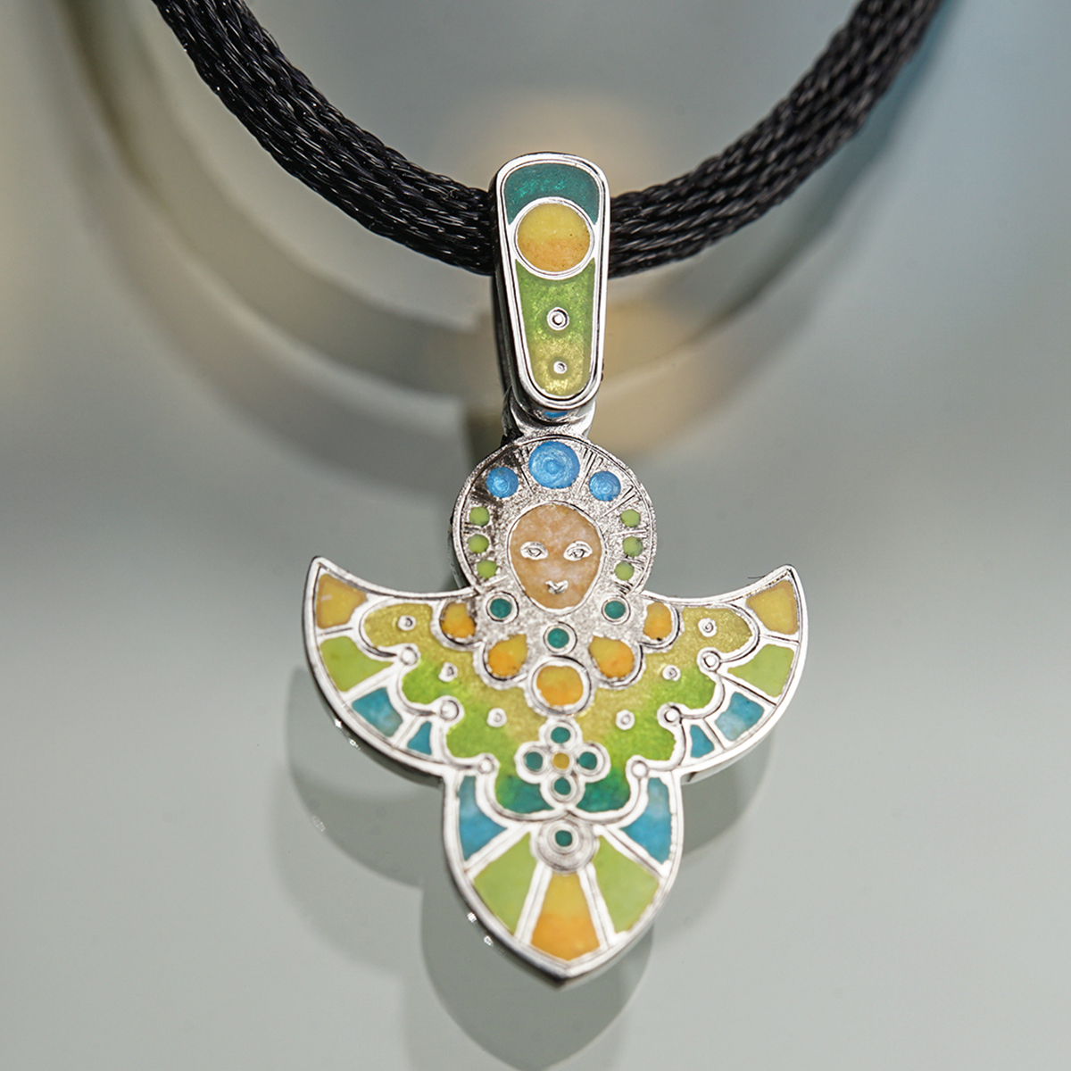Срібна підвіска "Янгол життя" з ювелірною емаллю від Lobortas