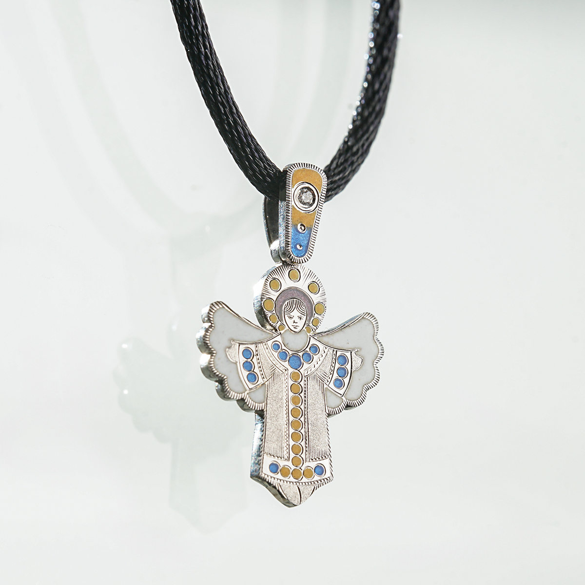 Срібна підвіска "Блага вість" з діамантом та ювелірною емаллю від Lobortas