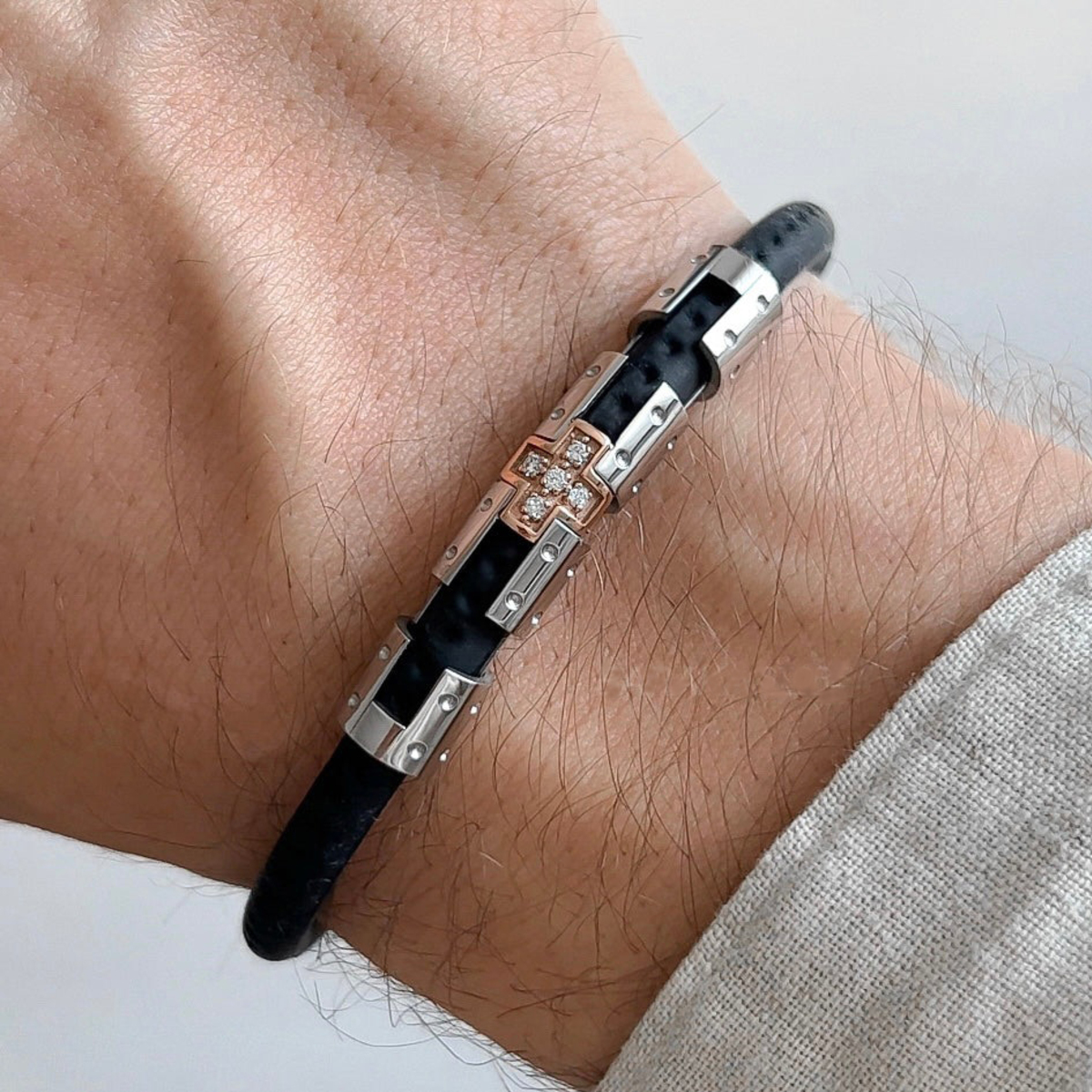 Сталевий браслет з рожевим золотом та діамантами "Kovar" від Baraka