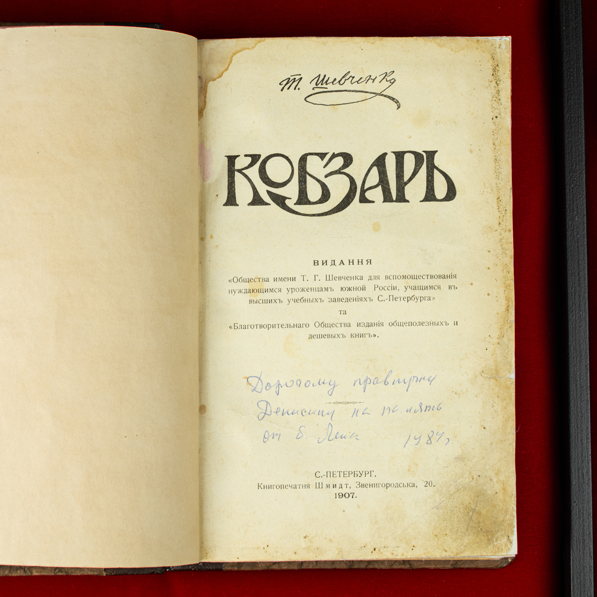 Старовинне видання "Кобзар" Тараса Шевченка у футлярі, друкарня Шмідт, Санкт-Петербург, 1907 рік