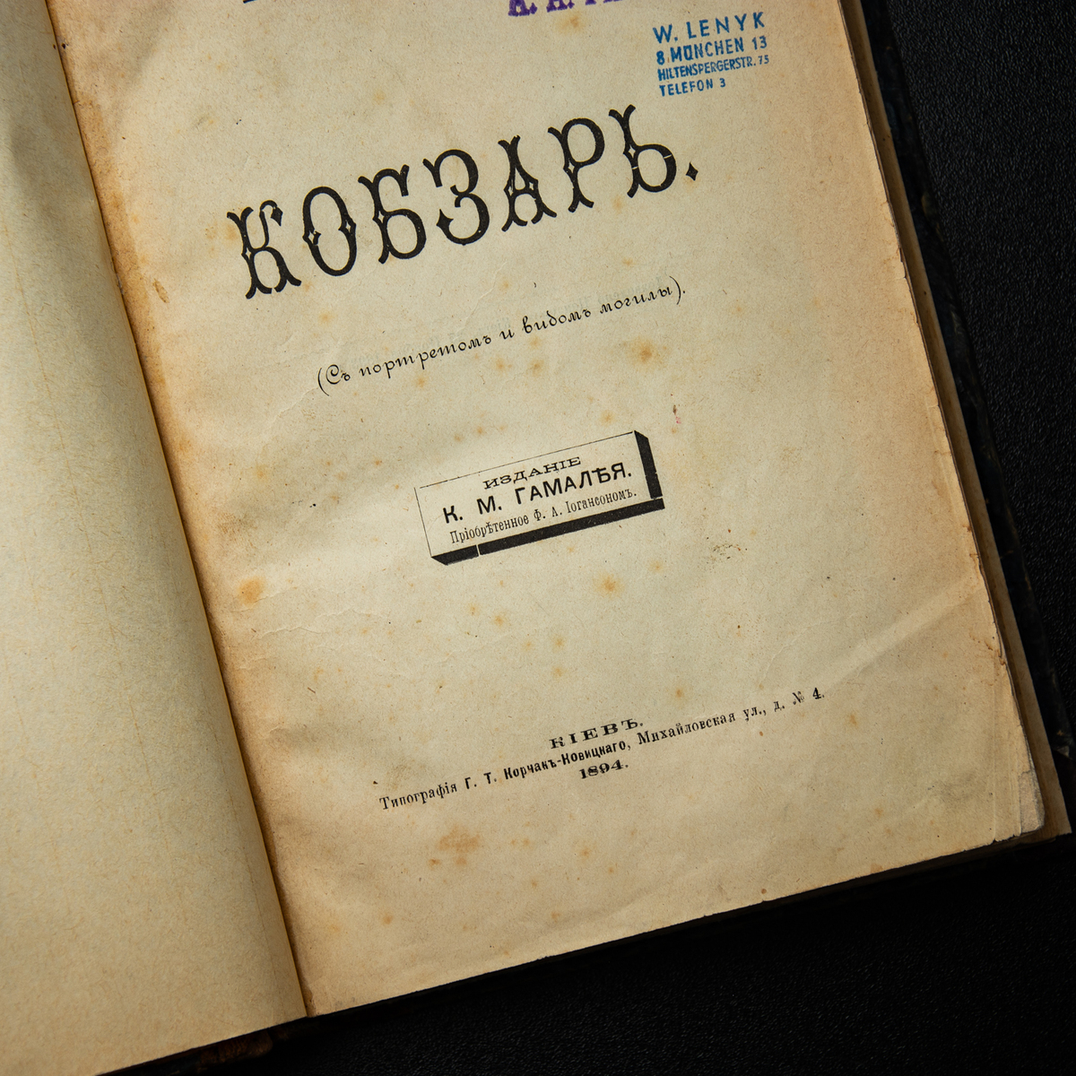 Старовинне видання Т. Г. Шевченка "Кобзар" (з портретом та видом могили), видання К. М. Гамалія, друкарня Г. Т. Корчак-Ковіцького, Київ, 1894 рік