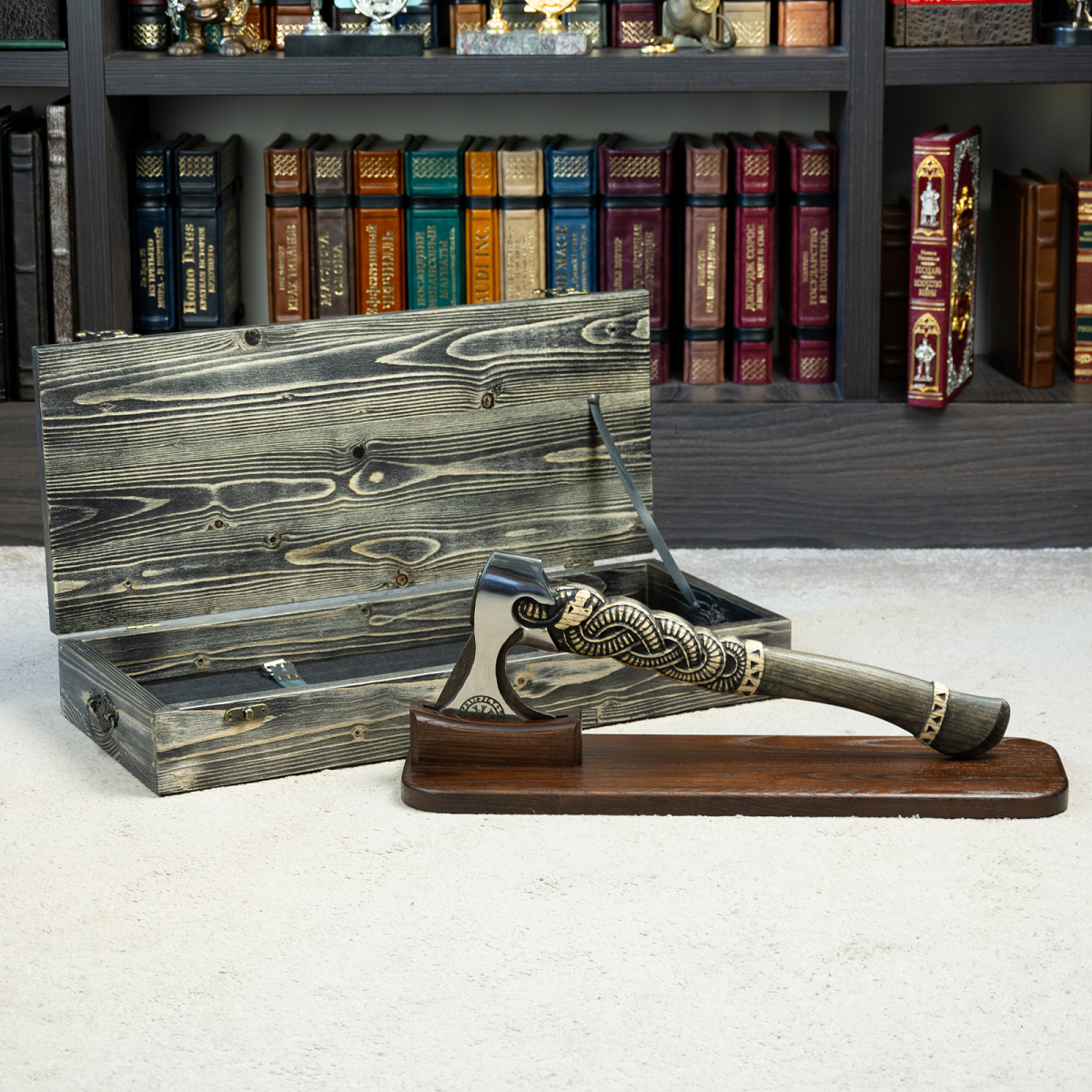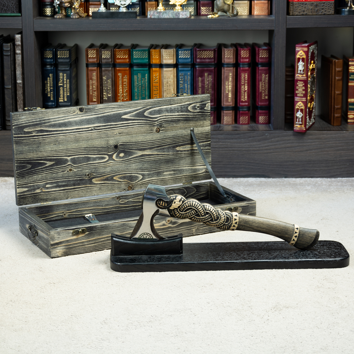Сокира ручної роботи "Slangeøks" з кейсом та підставкою від Topor & Molot