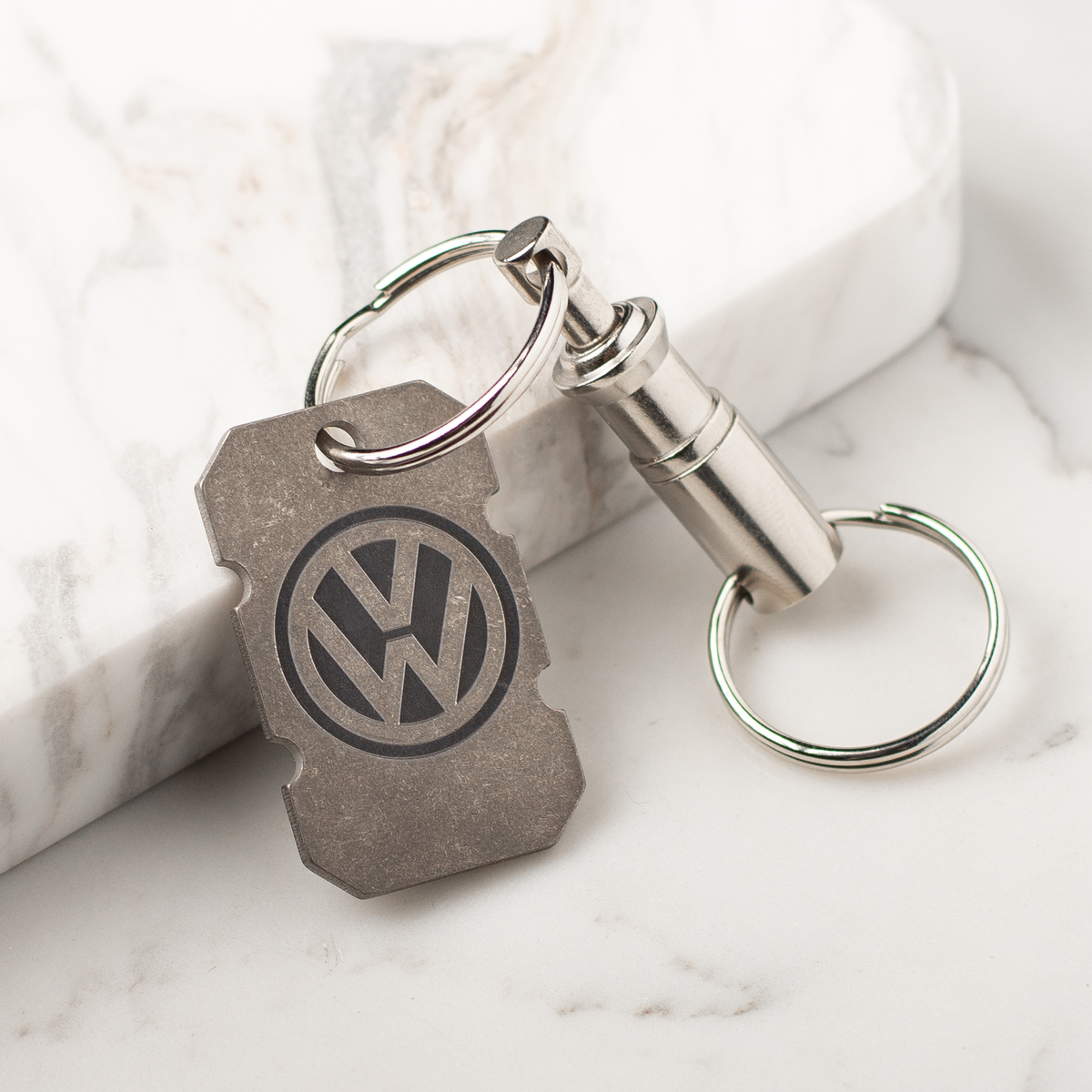 Титановий брелок "Volkswagen" зі швейцарським карабіном "Victorinox"