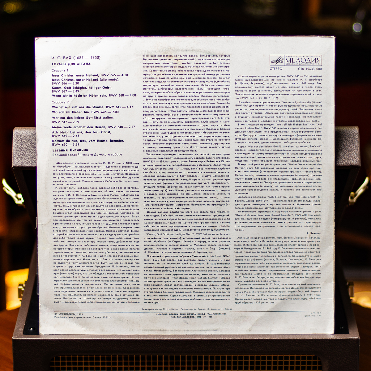 Вінілова платівка J. S. Bach - Yevgeniya Lisitsina – Choräle Von Verschiedener (1983)