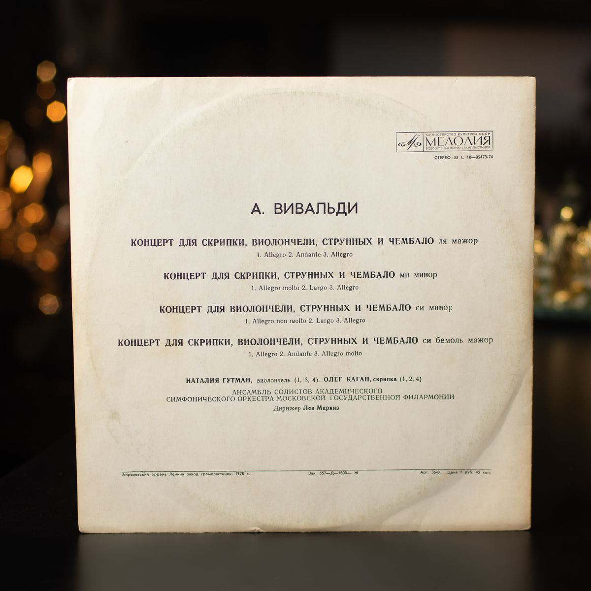 Вінілова платівка Антоніо Вівальді – Концерти для скрипки, віолончелі, струнних та чембало (1978)