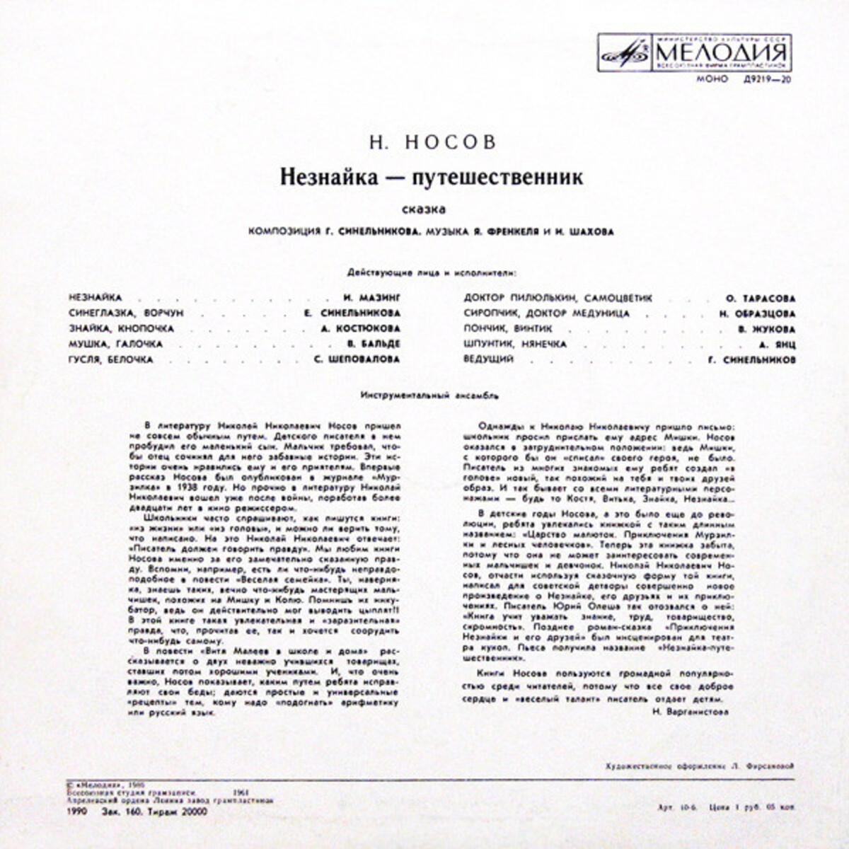Вінілова платівка Н. Носов - Незнайка - Мандрівник
