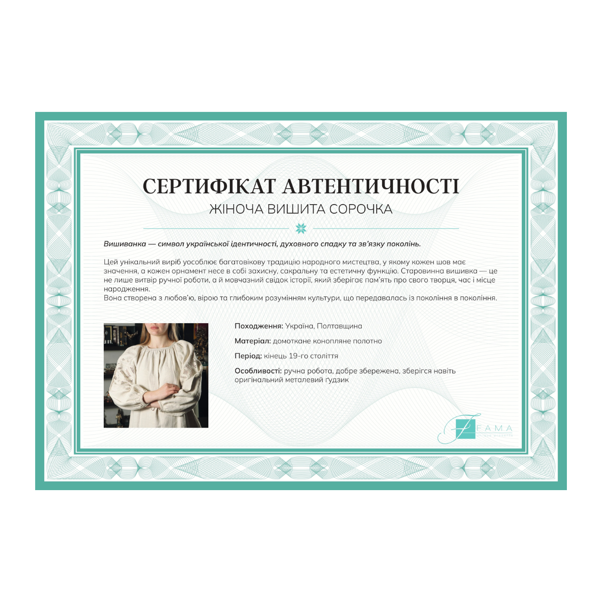 Вишита жіноча сорочка з домотканого конопляного полотна (ручна робота), Полтавщина, кінець 19-го століття