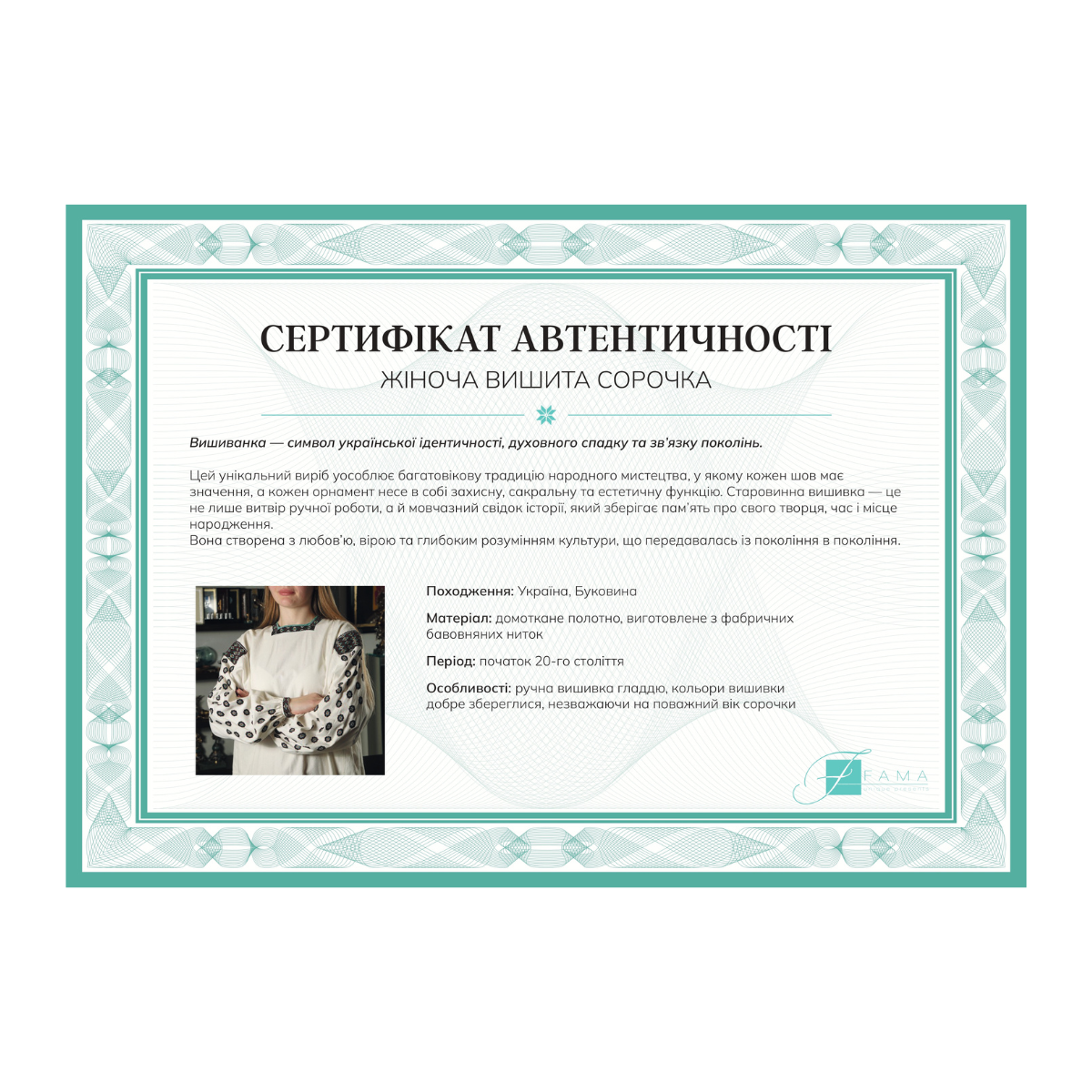 Вишита жіноча сорочка з домотканого полотна, виготовленого з фабричних бавовняних ниток, Буковина, початок 20-го століття