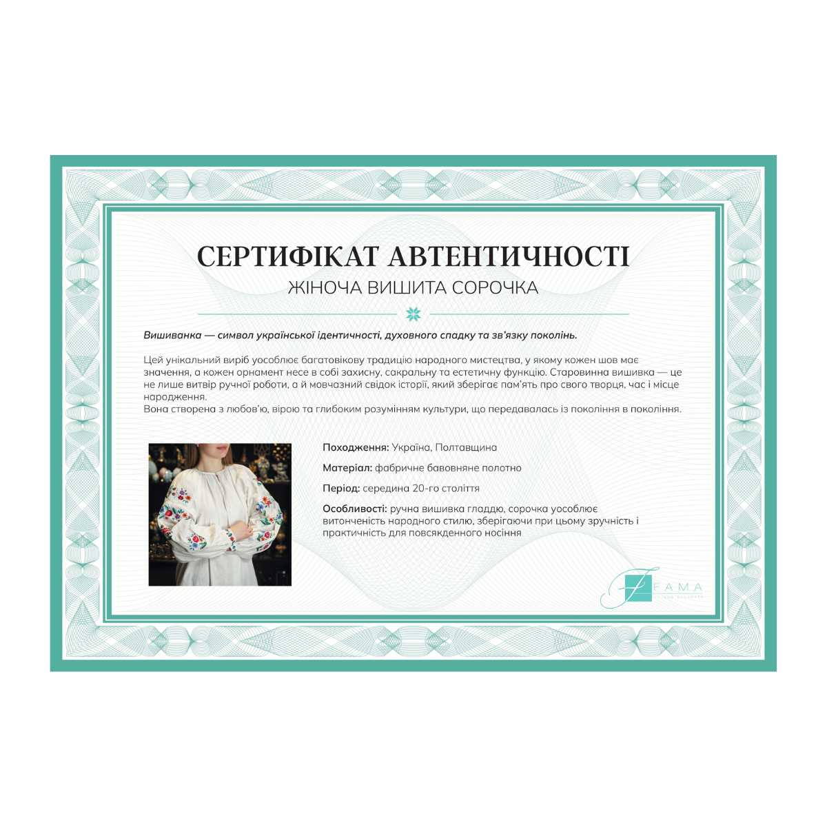 Вишита жіноча сорочка з фабричного полотна, Полтавщина, середина 20 сторіччя
