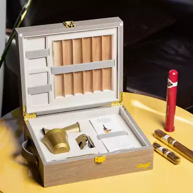 сигарний набір — до такого комплекту входять попільничка, тубус, гільйотина, запальничка з підставкою, тобто все, що треба для куріння сигар;