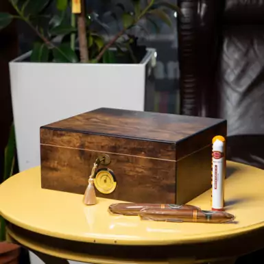 подарунковий кейс — кейс для зберігання сигар, що має в комплекті чарки, приємно здивує людину, яка цінує сигари та хороші міцні напої;
